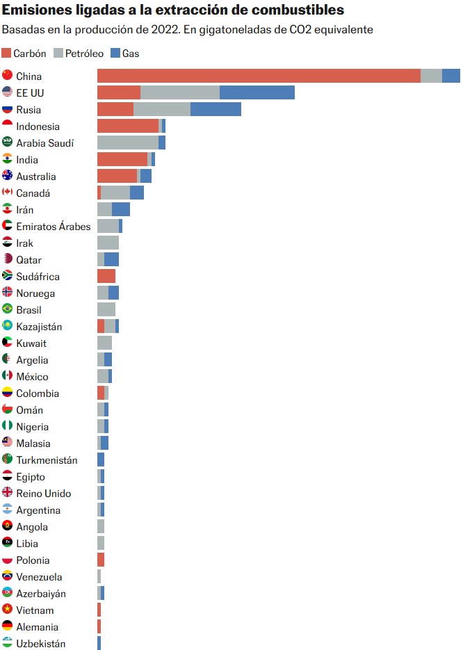 El estudio escrudiña en concreto los planes de 20 de los mayores productores de combustibles fósiles del planeta, que juntos acumulan el 80% de todo el petróleo, el carbón y el gas que se extrae en el mundo. Son China (el primer productor de carbón), Estados Unidos (el primero en petróleo y gas), Rusia, Indonesia, Arabia Saudí, India, Australia, Canadá, Emiratos Árabes Unidos, Qatar, Sudáfrica, Noruega, Brasil, Kazajstán, Kuwait, México, Colombia, Nigeria, el Reino Unido y Alemania. “17 de los 20 países destacados aún planean aumentar la producción de al menos un combustible fósil hasta 2030″, apunta el informe.